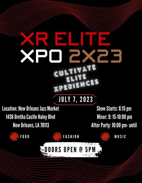 3rd Annual XRELITE Cultural XPO, July 7, 2023 2 years ago Local Events View Amazing Fashion and Culture in New Orleans! 3rd Annual XRELITE Cultural XPO New Orleans Jazz Market 1436 Oretha Castle Haley Boulevard New Orleans, LA 70113 July 7, 2023 4:45pm – 10:00pm Click Here for More Information.