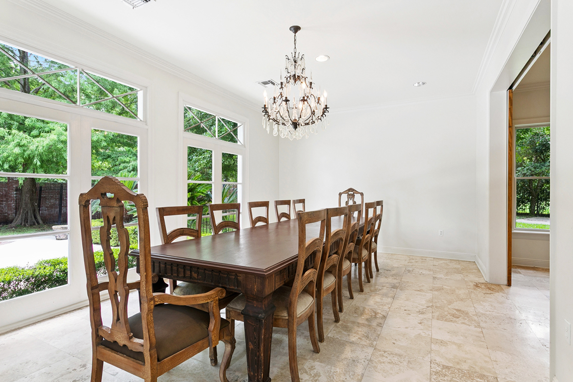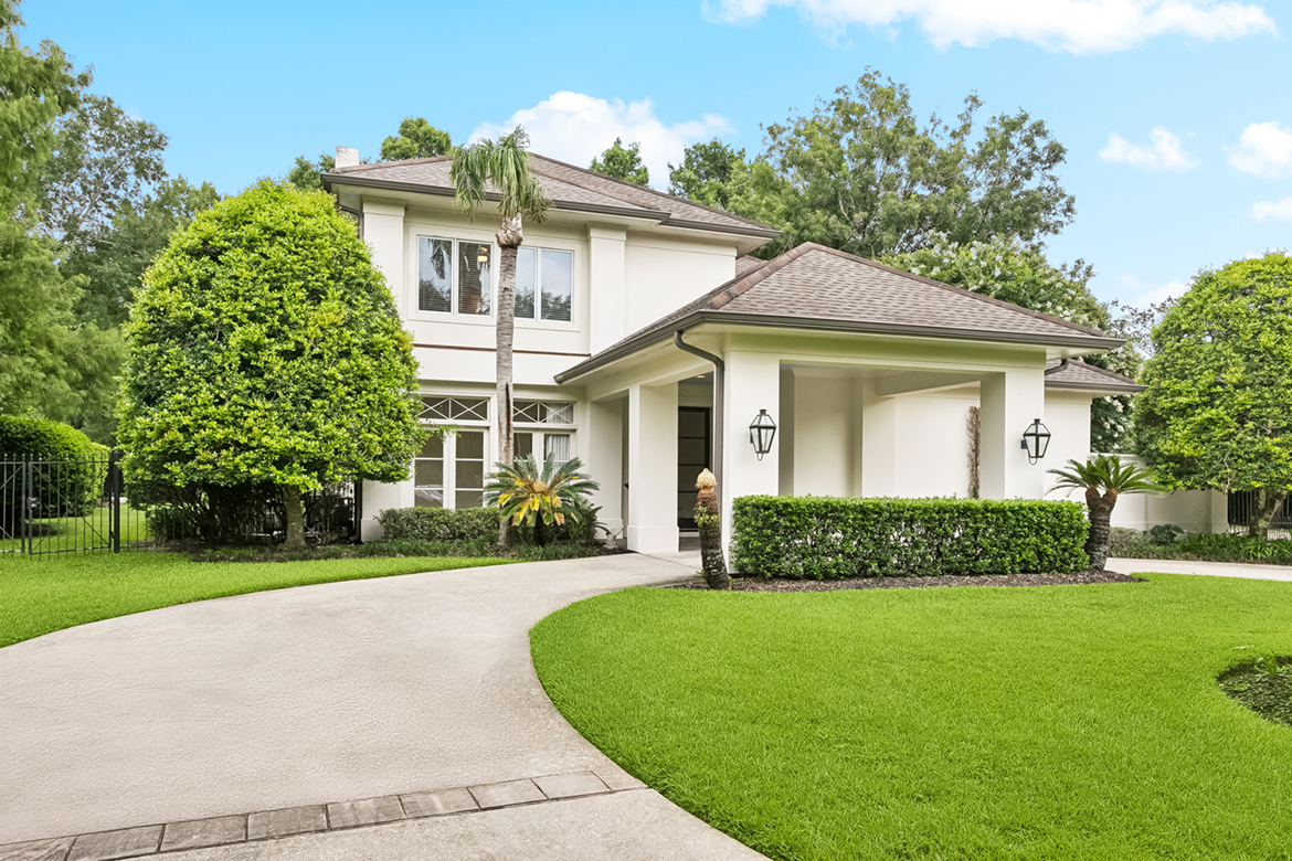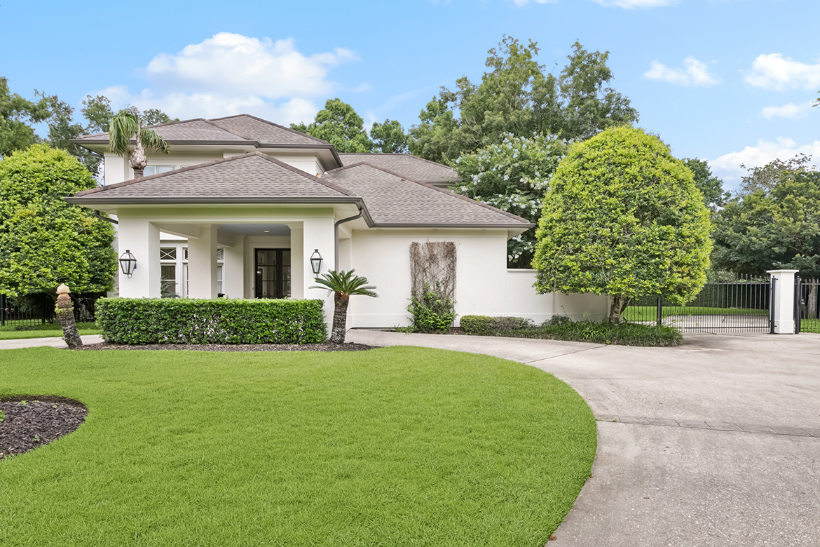 Welcome to 32 English Turn Drive — an elegant home for sale located in the highly sought-after English Turn gated, golf community. This beautifully maintained property offers privacy, luxury, and exceptional space – complete with a gorgeous inground pool, bonus side lot, and a thoughtfully designed floorplan, ideal for entertaining and everyday living. This home greets you with a circular driveway, a covered, front entrance, and a gated, side-entry, spacious garage, extra parking, and a fully fenced, additional yard area. Step inside to a welcoming foyer with a grand staircase, featuring wrought iron railings. The downstairs guest bedroom includes a custom closet and access to a full bath, perfect for visitors or multi-generational living. Enjoy cozy evenings in the living room with a gas fireplace, custom built-ins, and French doors that open to the covered patio overlooking the pool and professionally landscaped backyard. The gourmet kitchen is a chef’s dream, featuring a Viking gas stove, Sub-Zero refrigerator, built-in icemaker, large island, and an abundance of natural light. A spacious pantry and a laundry room with storage add extra convenience. An extra-large formal dining room offers beautiful views of the backyard and pool through oversized windows — perfect for hosting gatherings. Upstairs, the primary suite is a true retreat with a custom multi-level closet system, built-in drawers, a sitting area, and French doors. The luxurious en suite bath includes a soaking tub, separate shower, and elegant finishes. Two additional bedrooms upstairs share a Jack ‘n Jill bath, each featuring custom closets. All located within the beautifully maintained and amenity-rich English Turn community, offering a championship golf course, clubhouse, tennis courts, walking trails, playgrounds, and 24/7 gated security.
