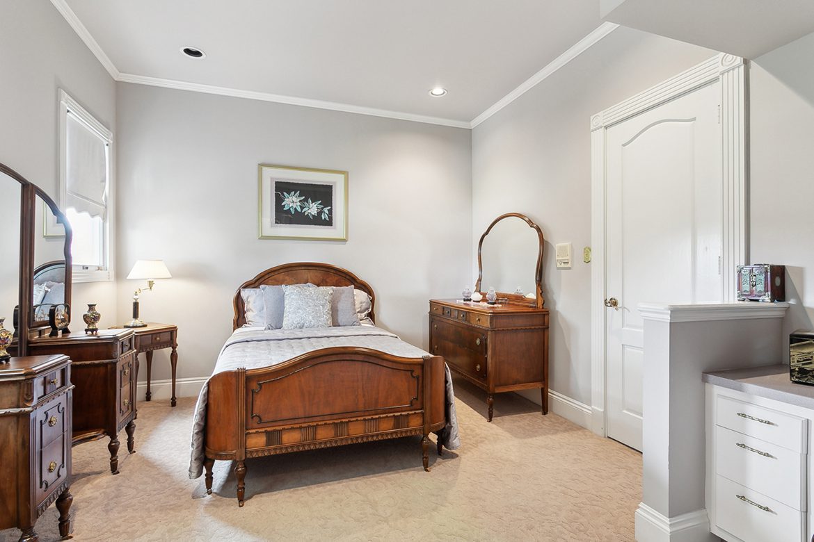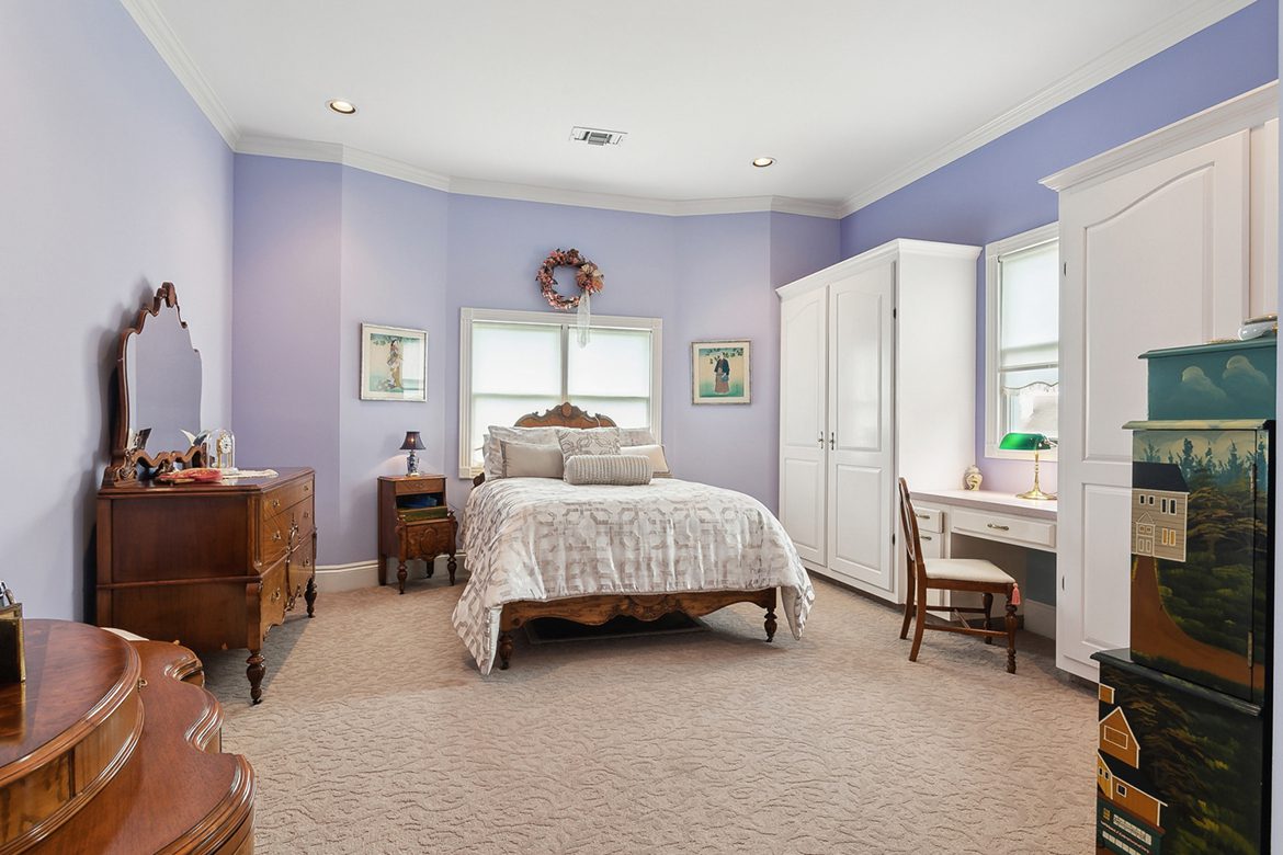 Guest & Additional Bedrooms: Guest suite offers built-ins, a desk, crown molding, and a private bath. The third bedroom includes a walk-in closet and a built-in desk.